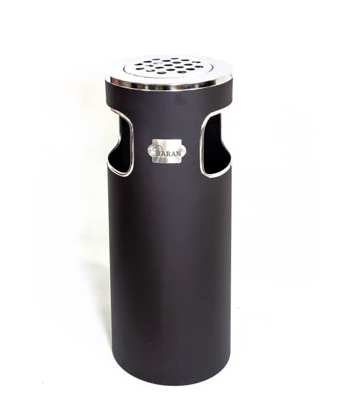 سطل زباله اداری تمام استیل مشکی نقره ای