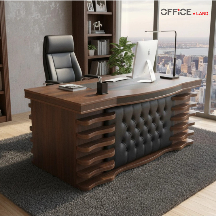 ابعاد و فرم میز سلنا به گونهای طراحی شده که هم در دفاتر رسمی و هم در فضاهای مدرن و مینیمال قابل استفاده باشد. ترکیب رنگ چوب طبیعی با جزئیات فلزی مات، جلوهای حرفهای و در عین حال گرم و دعوتکننده به محیط میبخشد. این میز نهتنها جایگاه مدیریتی شما را برجسته میکند، بلکه به عنوان نقطهی کانونی دکوراسیون دفتر نیز عمل میکند.